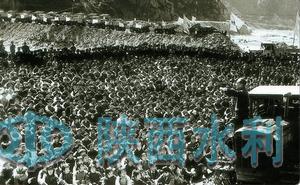 关中各地互追赶,热火朝天竞争先。宝鸡峡  羊毛湾,大型灌区早开建;