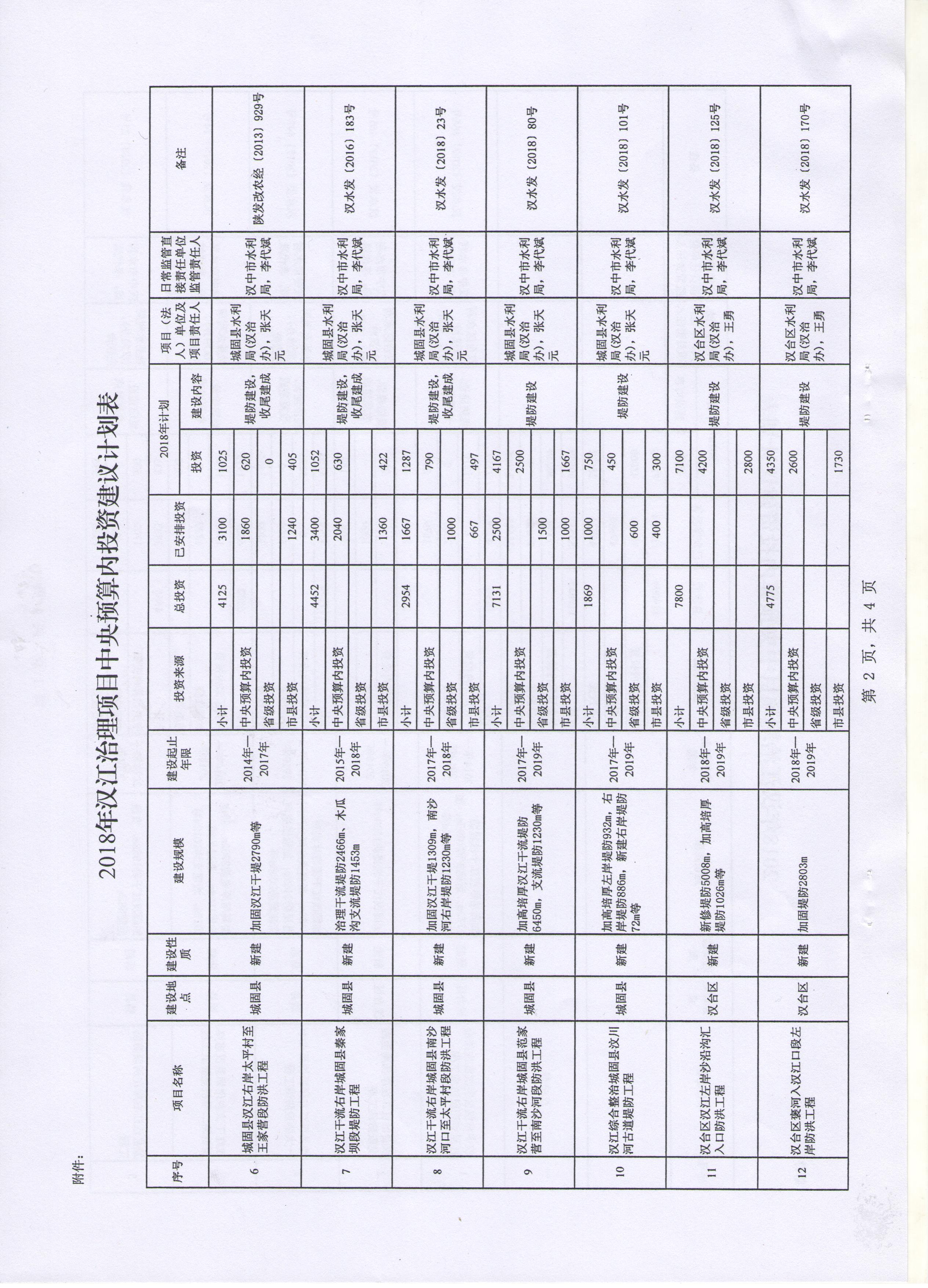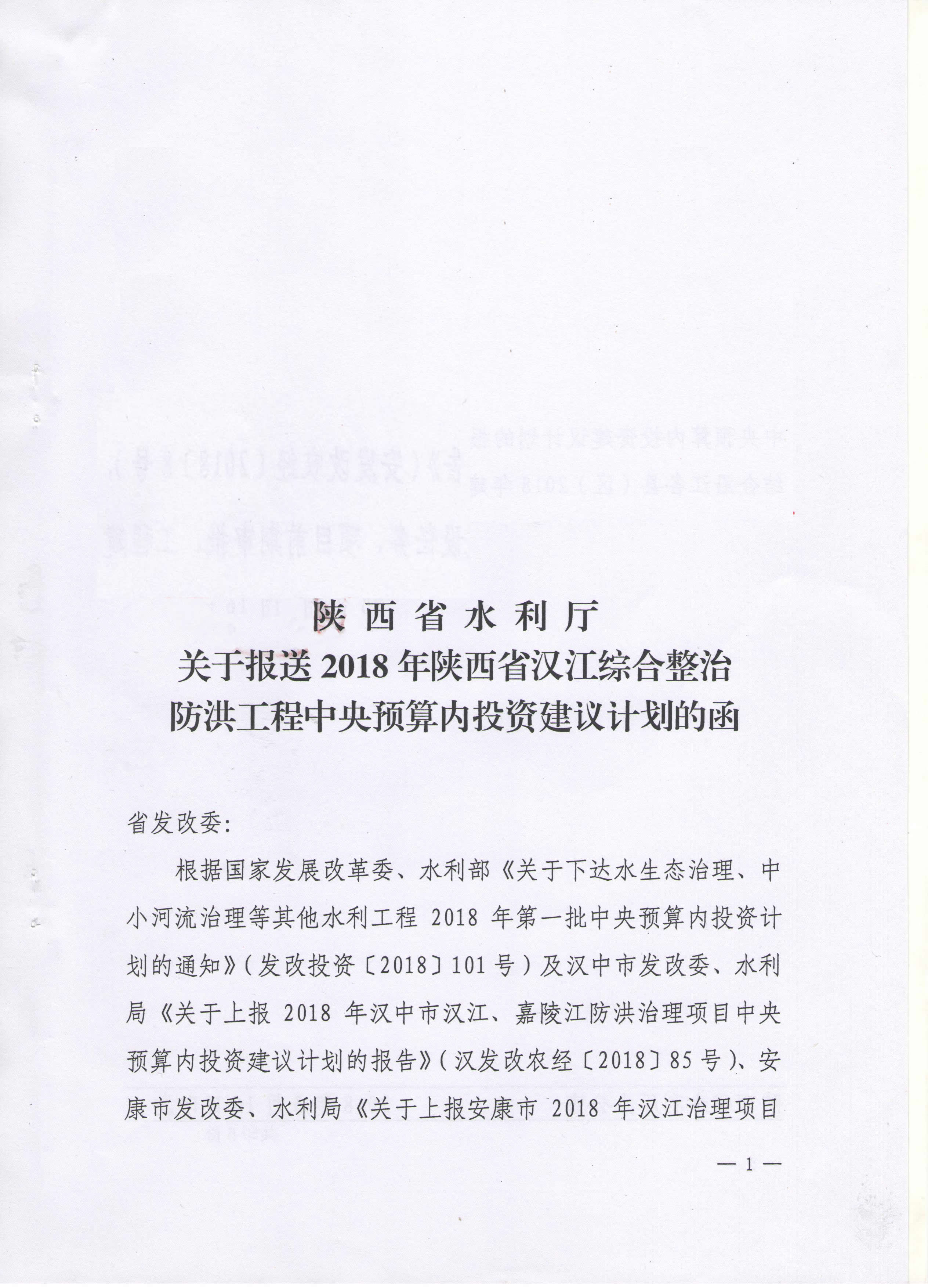 关于报送2018年陕西省汉江综合治理防洪工程中央预算内投资建议计划的函