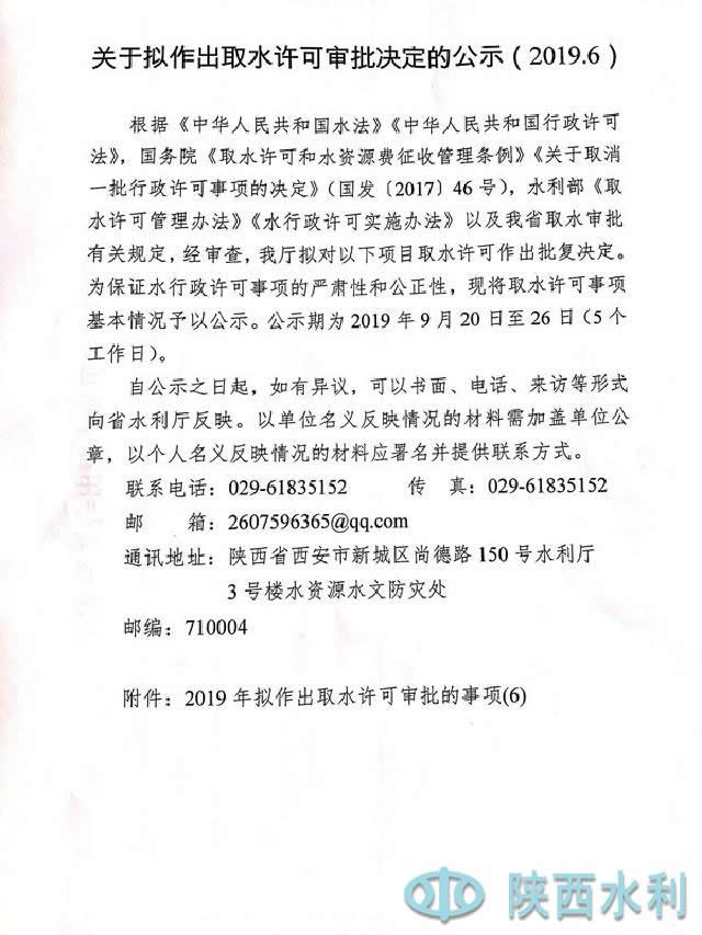 [ 名 称 ] 关于拟作出取水许可审批决定的公示(2019.6)