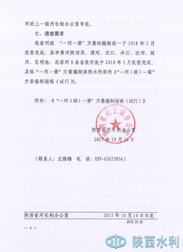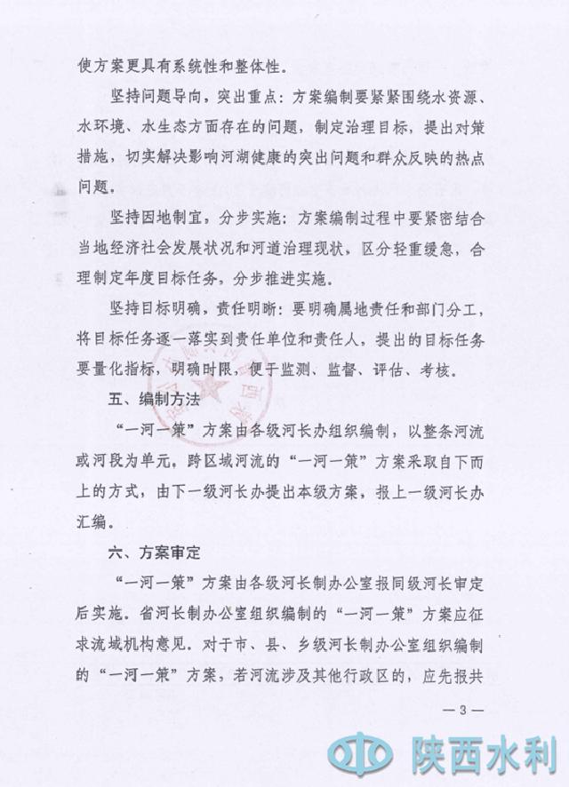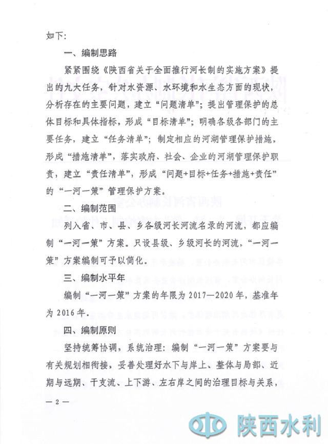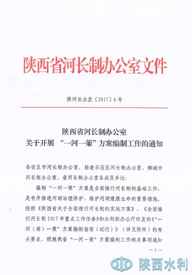陕西省河长制办公室关于开展“一河一策”方案编制工作的通知
