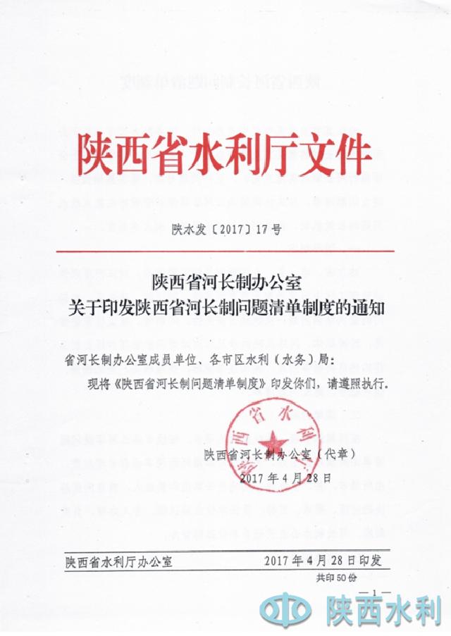 陕西省河长制办公室关于印发陕西省河长制问题清单制度的通知