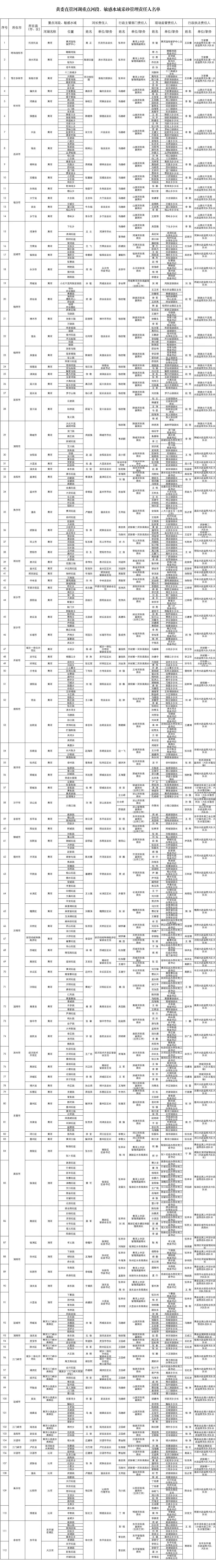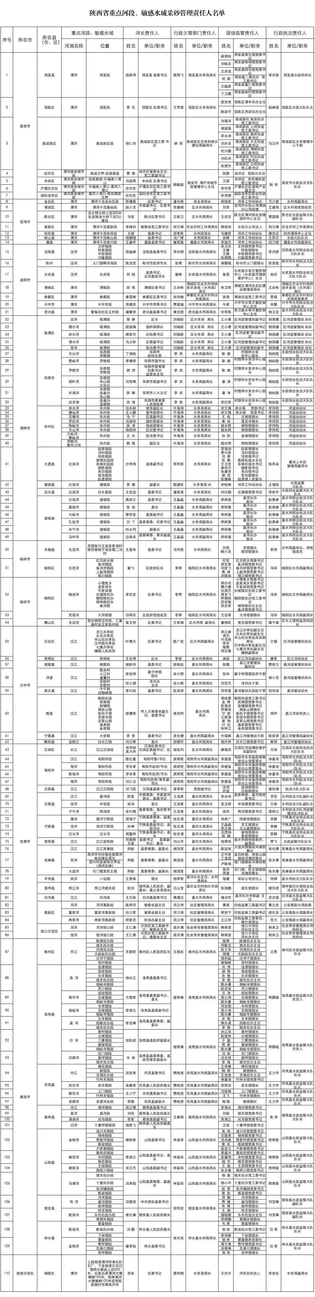 全国河道采砂管理重点河段、敏感水域相关责任人名单(陕西省)