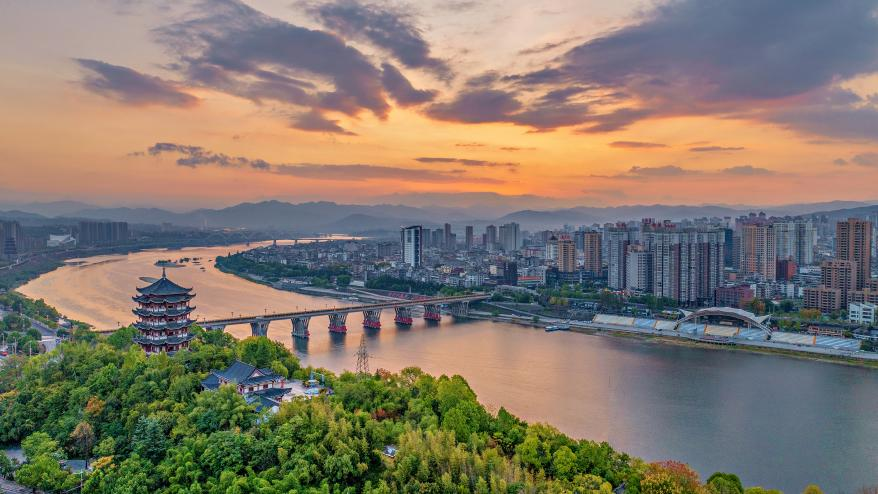 清晨的安澜楼和安康市城区